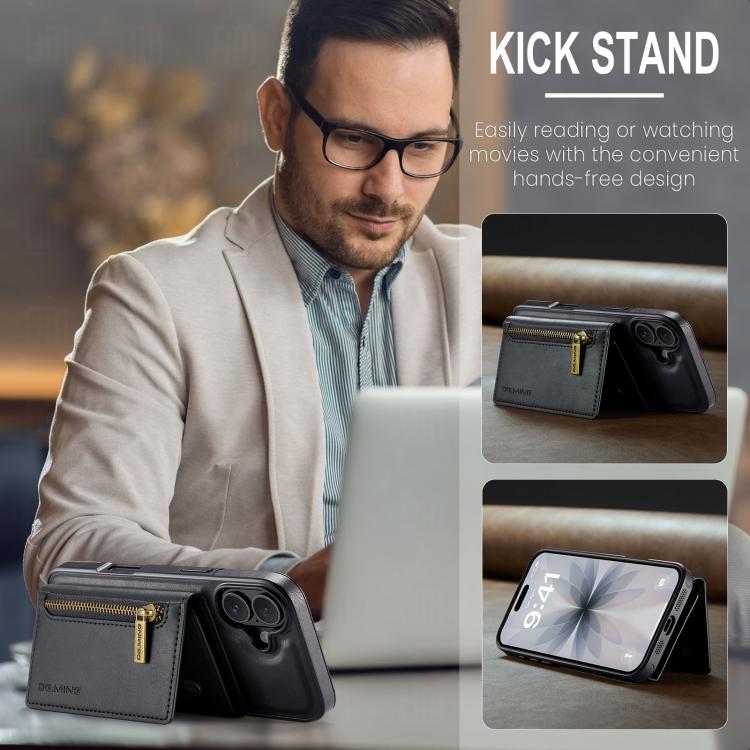 Funda de cuero desmontable con cremallera RFID para iPhone 17, serie M5, DG.MING (negro)