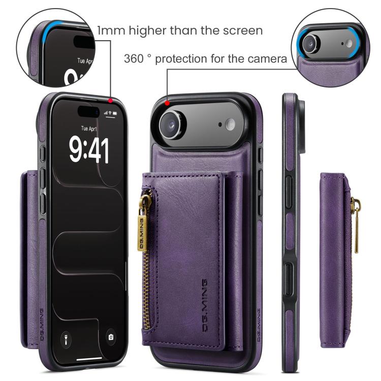 Funda de cuero desmontable con cremallera RFID para iPhone Air DG.MING M5 Series (morado)