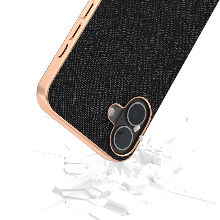 Funda de Cuero Genuino Abeel para iPhone 16 con Textura Cruzada y Marco Galvanizado (Negro)