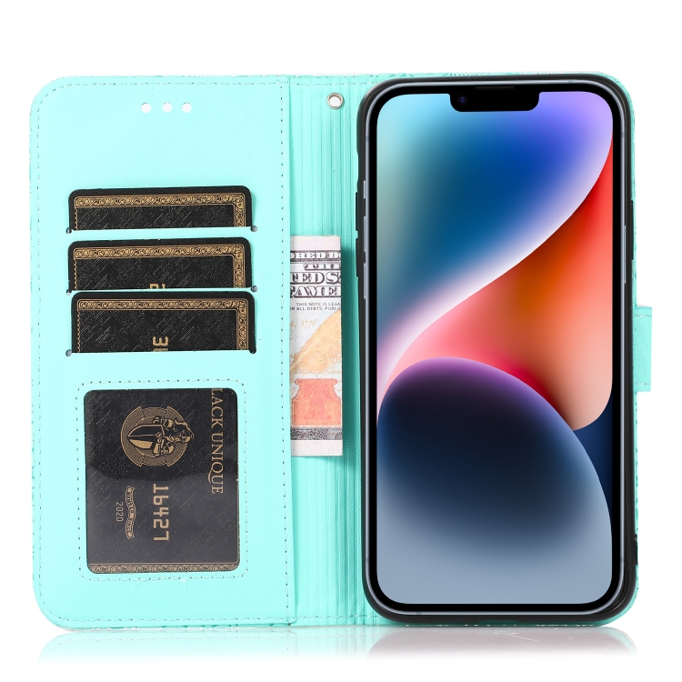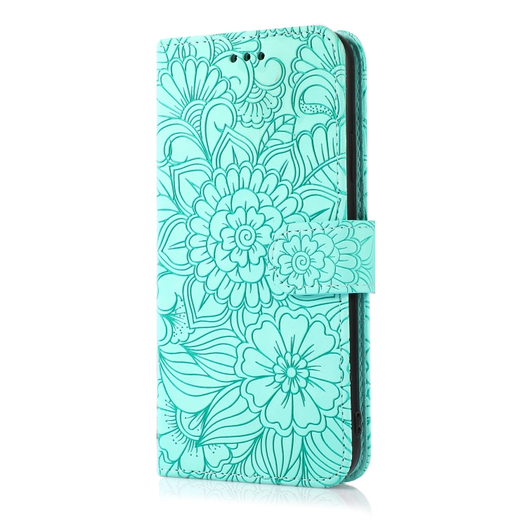 Horizontal Sunflower Embossed Leather Case for iPhone 13 Pro Skin Feel (Green)