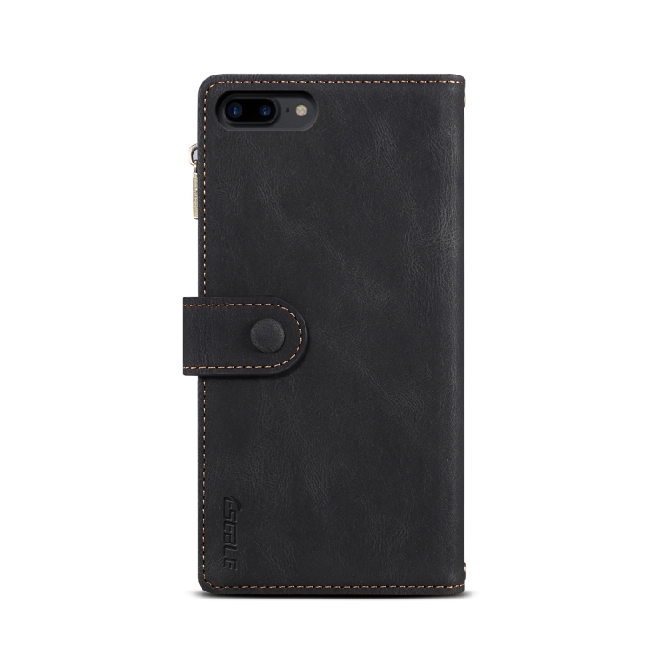 Funda de Cuero Horizontal Helada Retro con Soporte Ranura Tarjetas Billetera Cremallera Pocket Lanyard para iPhone 6 Plus y 6S Plus (Negro)