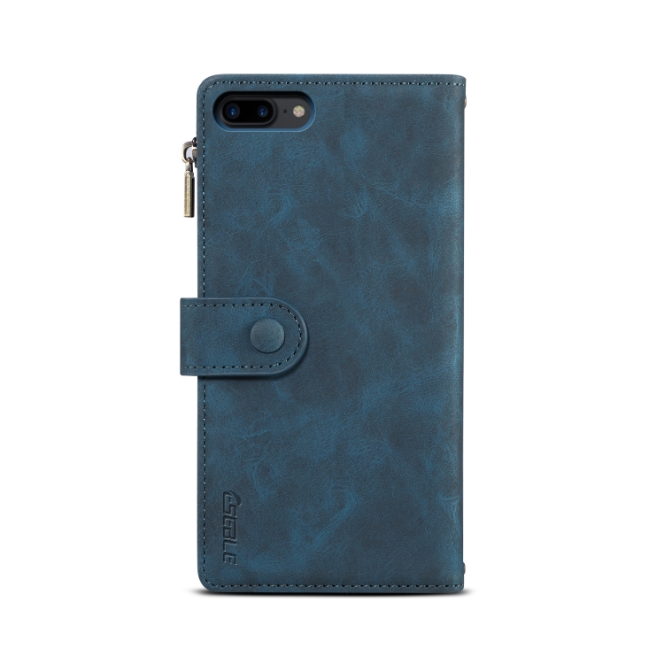 Funda de Cuero Horizontal Hellado Retro con Soporte Ranura Tarjetas Billetera Cremallera Pocket Lanyard para iPhone 6 Plus y 6S Plus (Deep Green)