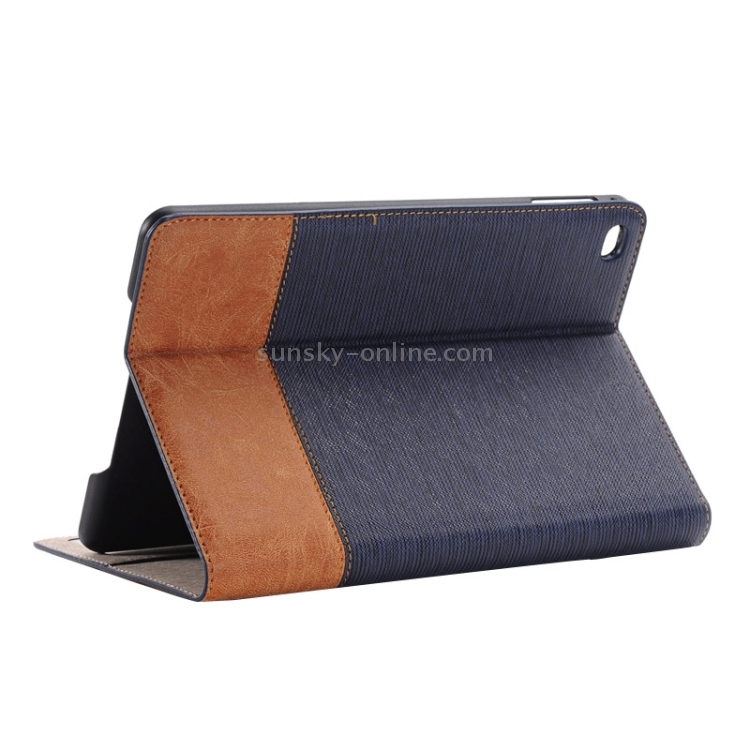 Funda para iPad Mini 4 Cuero Inteligente Textura Cruzada Soporte Ranuras Tarjetas Billetera (Azul Oscuro)