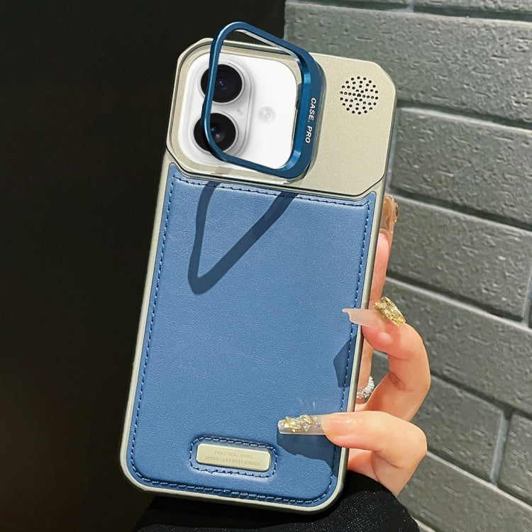 Funda de Cuero para iPhone 16 Magsafe con Soporte de Metal (Azul)