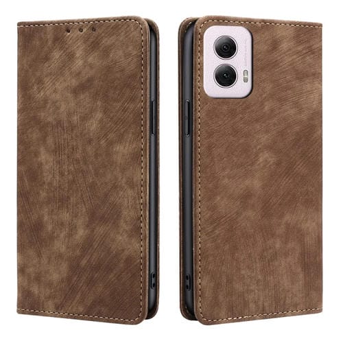 Funda de Cuero Magnética con Cepillo Antirrobo RFID para Motorola Moto G Power 5G (2024) (Marrón)