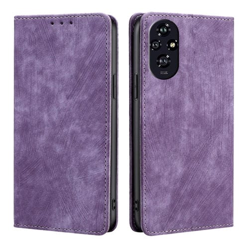 Funda de Cuero Magnética Honor 200 5G con Cepillo Antirrobo RFID (Morado)