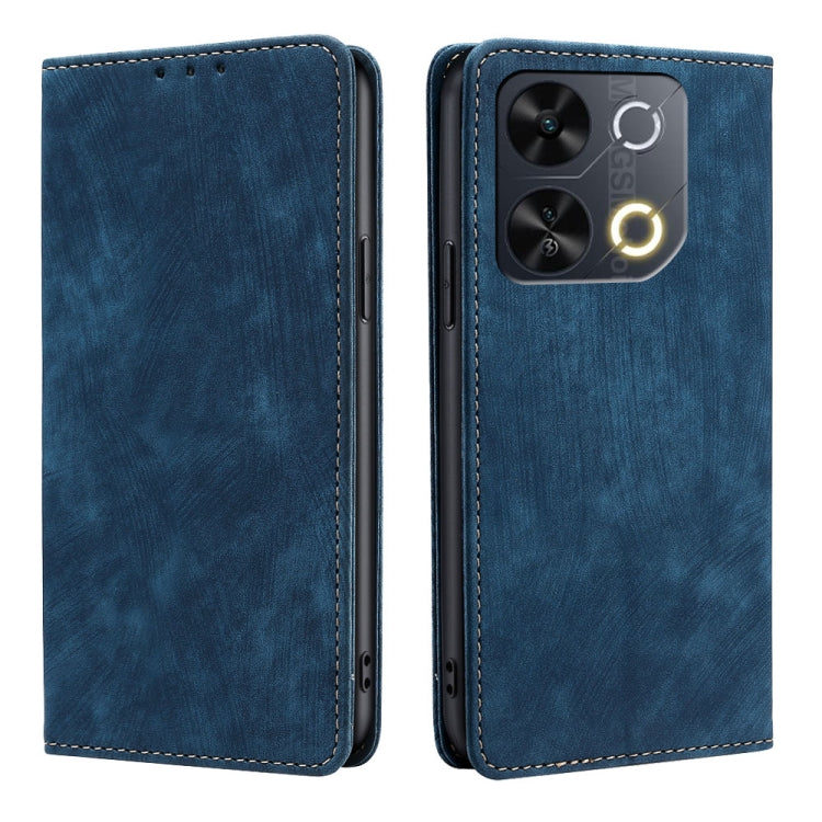 Funda de Cuero Magnética con Cepillo Antirrobo RFID para Teléfono Itel P65 (Azul)