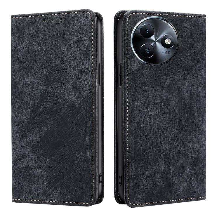 Funda de Cuero Magnética con Cepillo Antirrobo Rfid para Itel S24 4G (Negra)