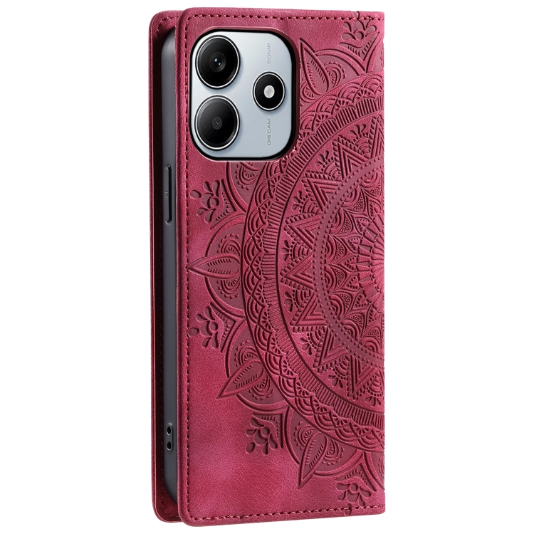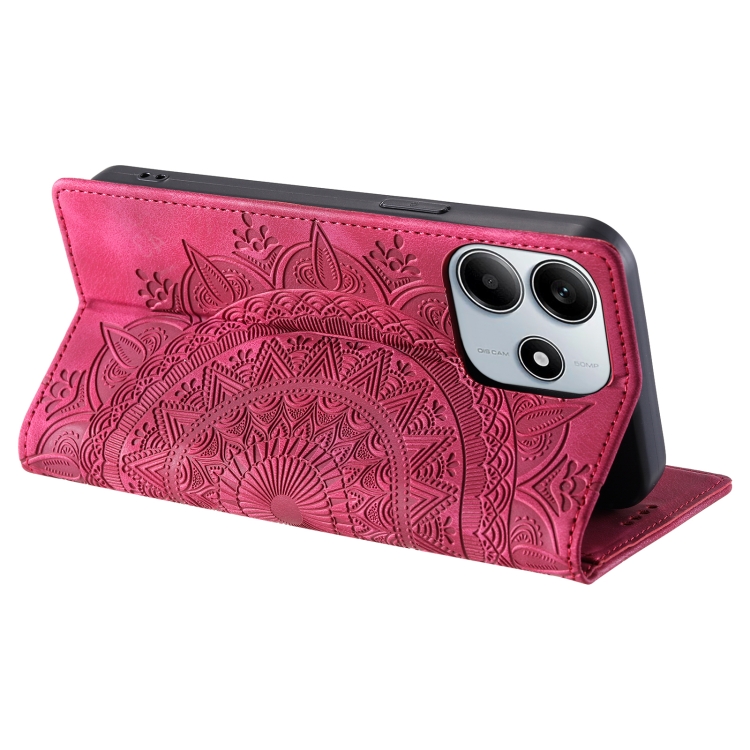 Funda de Cuero Magnética con Relieve Totem para Teléfono Xiaomi Redmi Note 14 5G (Rojo)