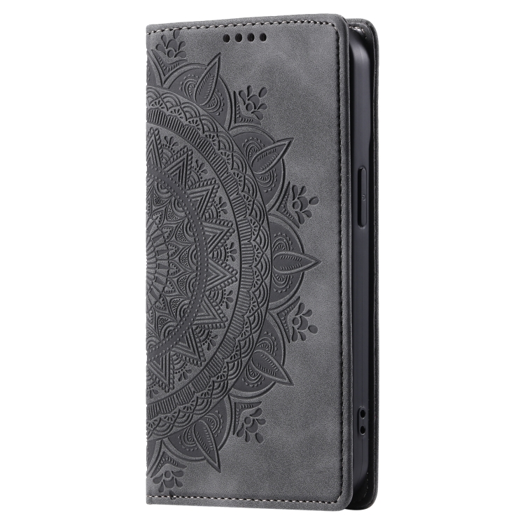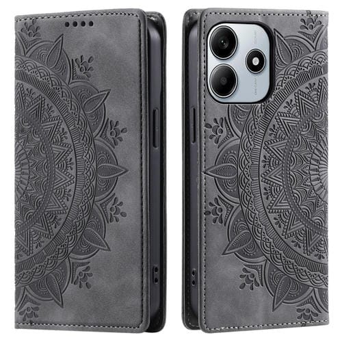 Funda de Cuero Magnética con Relieve Totem para Xiaomi Redmi Note 14 5G (Gris)