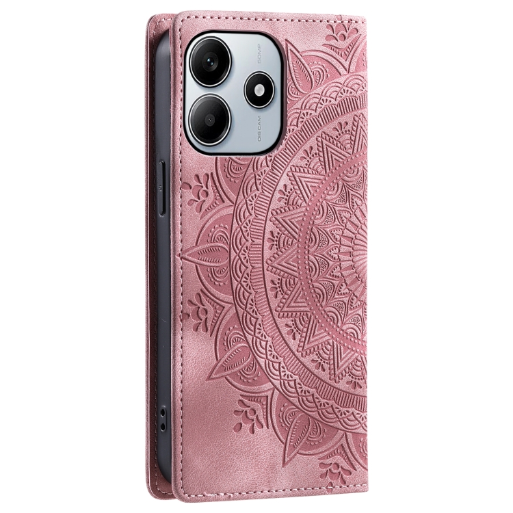 Funda de Cuero Magnética con Relieve Totem para Xiaomi Redmi Note 14 5G (Oro Rosa)
