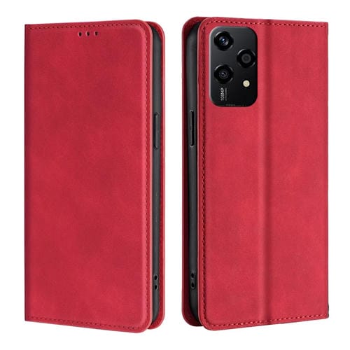 Funda de Cuero Magnética con Tacto de Piel para Honor 200 Lite 5G (Rojo)