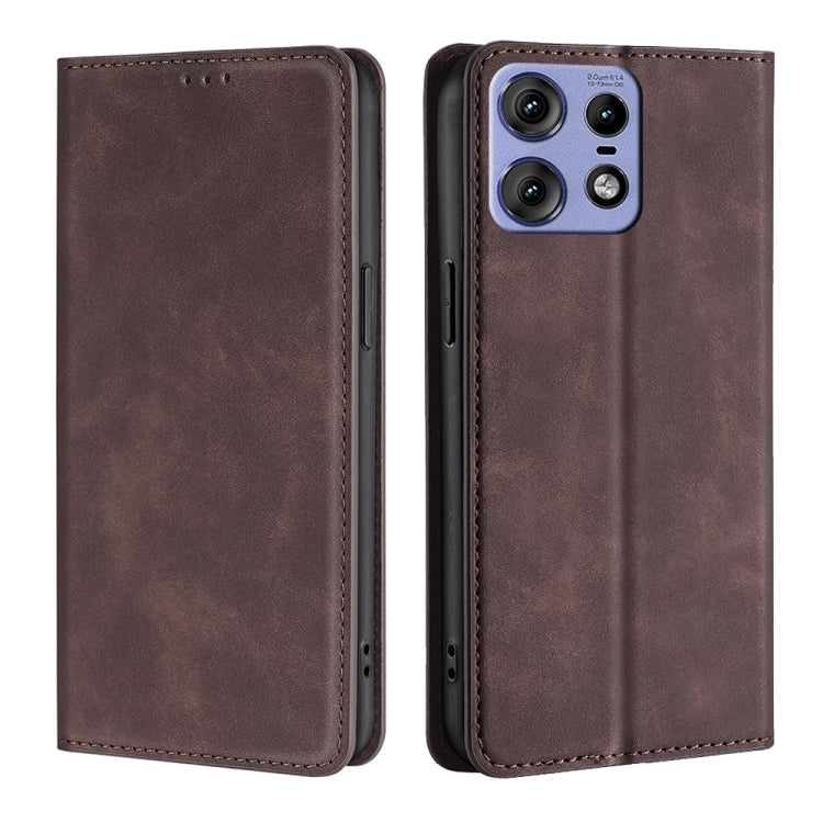 Funda Cuero Magnética con Tacto de Piel para Motorola Edge 50 Pro 5G (Marrón Oscuro)