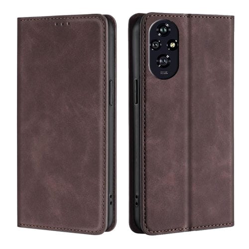 Funda de Cuero Magnética para Honor 200 5G con Tacto de Piel (Marrón Oscuro)