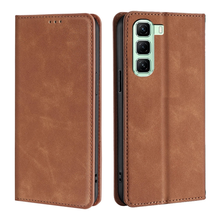 Funda de Cuero Magnética con Tacto de Piel para Infinix Hot 50 5G (Marrón Claro)