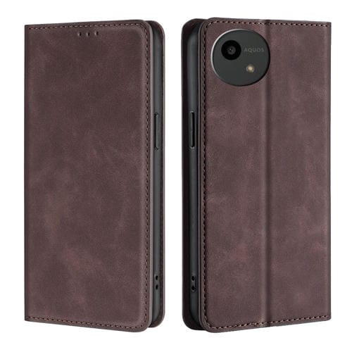 Funda de Cuero Magnética para Sharp Aquos Wish4 con Tacto de Piel (Marrón Oscuro)