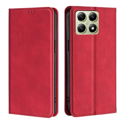 Funda De Cuero Magnética Con Tacto De Piel Para Xiaomi 14T 5G (Roja)