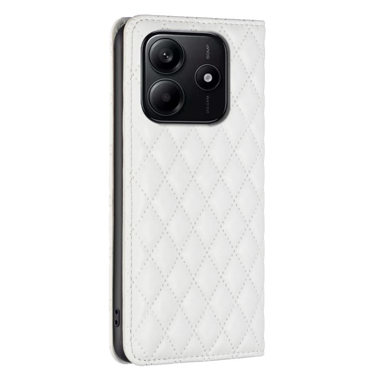 Funda de Cuero Magnética con Tapa Tipo Cartera para Redmi Note 14 4G con Diseño de Diamante (Blanco)