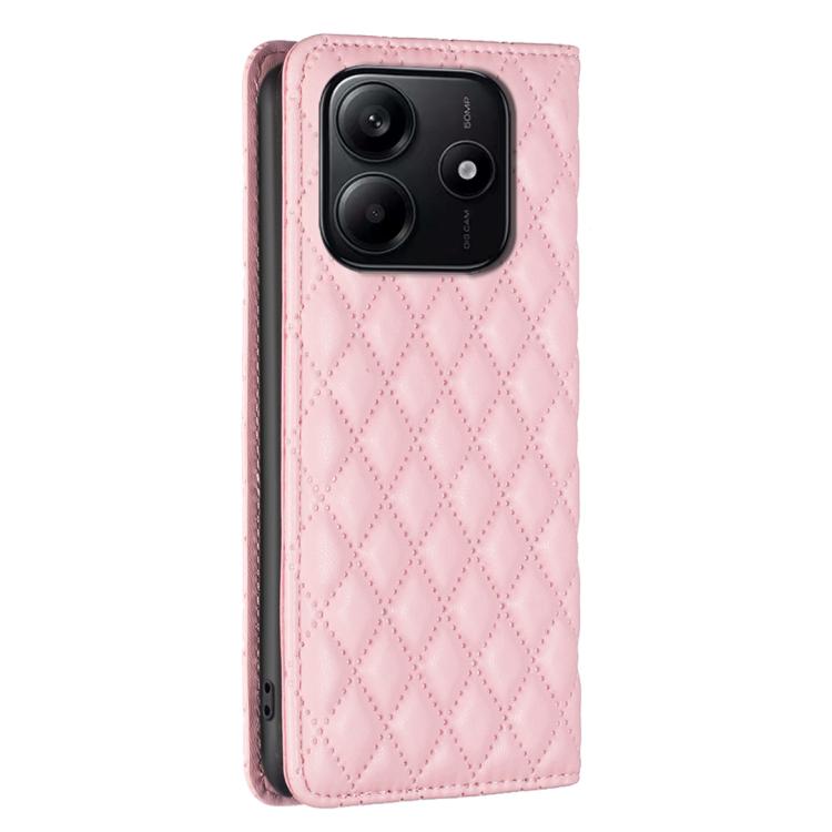 Funda de Cuero Magnética con Tapa Tipo Cartera para Redmi Note 14 4G con Diseño de Entramado de Diamantes (Rosa)