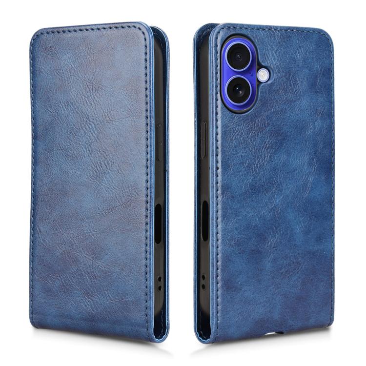 Funda de Cuero Magnética con Tapa Vertical para iPhone 16 (Azul)