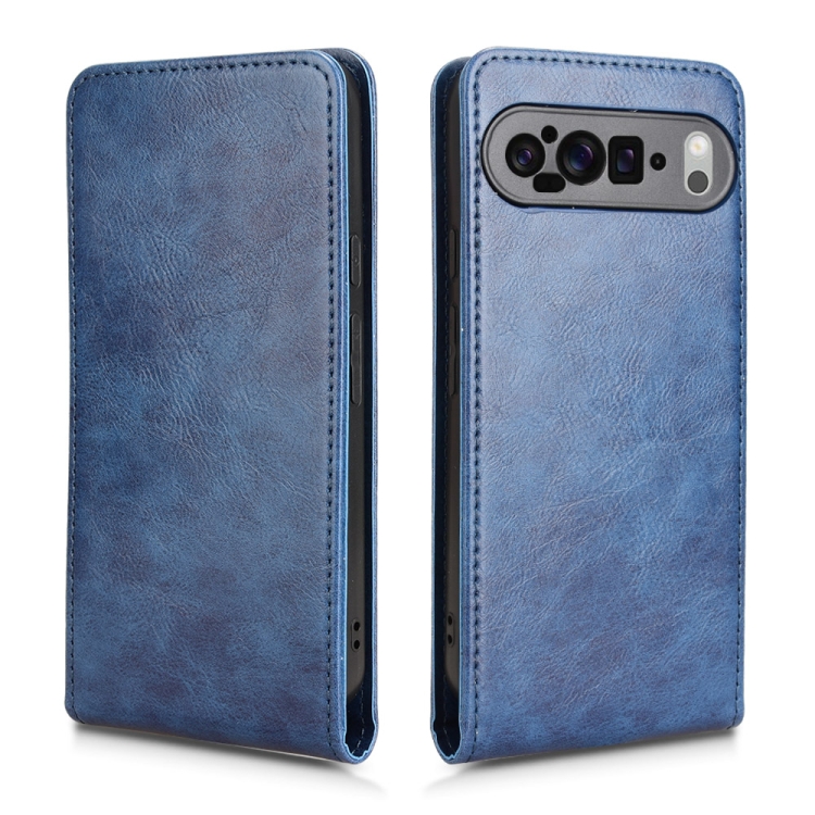 Funda de Cuero Magnética con Tapa Vertical para Google Pixel 9 Pro XL (Azul)