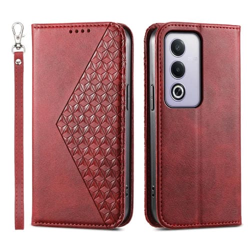 Funda de Cuero Magnética con Textura de Becerro y Cuadrícula Cúbica para Oppo A3 Pro 5G (Rojo)