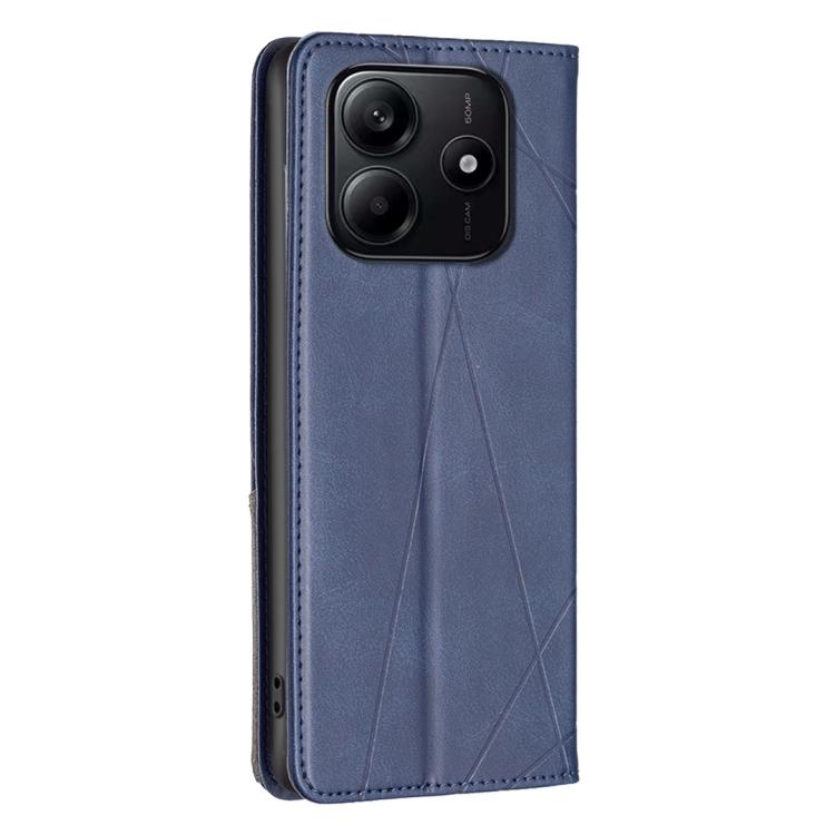 Funda de Cuero Magnética con Textura de Rombos para Redmi Note 14 4G (Azul)