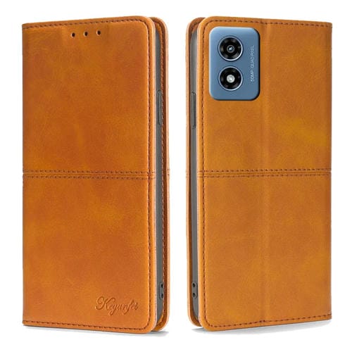 Funda de Cuero Magnética con Textura de Vaca para Motorola Moto G 5G (2024) (Marrón Claro)