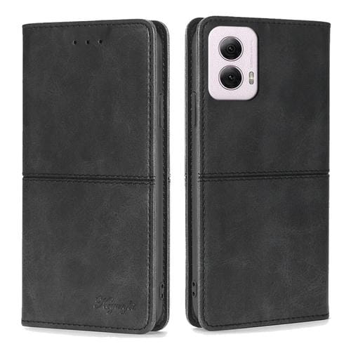 Funda de Cuero Magnética con Textura de Vaca para Motorola Moto G Power 5G (2024) (Negro)