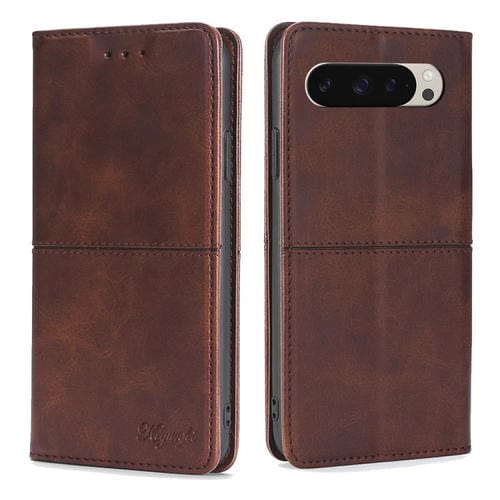 Funda de Cuero Magnética Textura de Vaca para Google Pixel 9 (Marrón Oscuro)