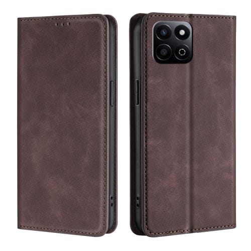 Funda de Cuero Magnética para Honor Play 60 Plus con Tacto de Piel (Marrón Oscuro)