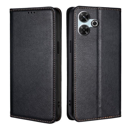 Funda de Cuero Magnético con Acabado Brillante y Aceite Sólido para Redmi 13 4G (Negro)