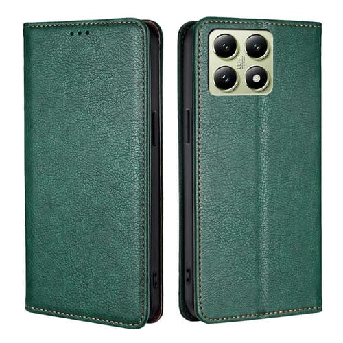 Funda De Cuero Magnética Para Teléfono Xiaomi 14T 5G Con Acabado Brillante Y Color Sólido (Verde)