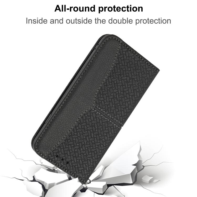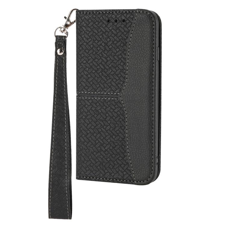 Funda de cuero magnético con textura tejida y costuras para Samsung Galaxy A07 4G/A06 4G (negra)