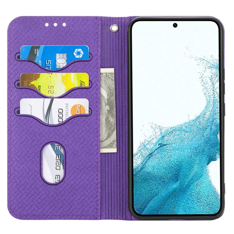 Funda de cuero magnético con textura tejida y costuras para Samsung Galaxy A17 5G/A26 5G (morado)