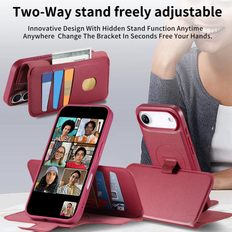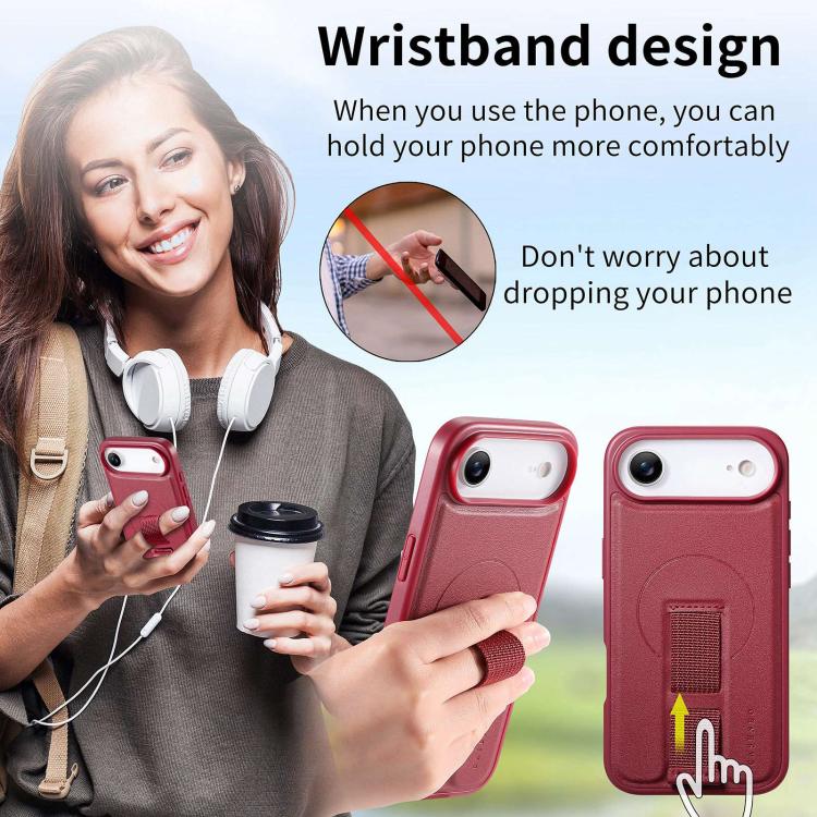 Funda de cuero MagSafe con correa de agarre para el dedo para iPhone Air (roja)