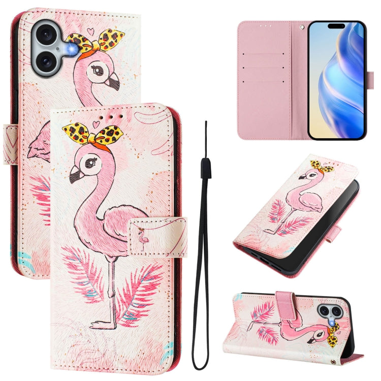 Funda de Cuero para iPhone 16 Diseño de Dibujo Artístico (Flamenco)