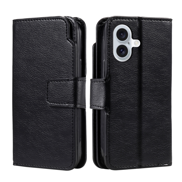Funda de Cuero para iPhone 16 con Tres Pliegues y Capacidad para 9 Tarjetas (Negra)