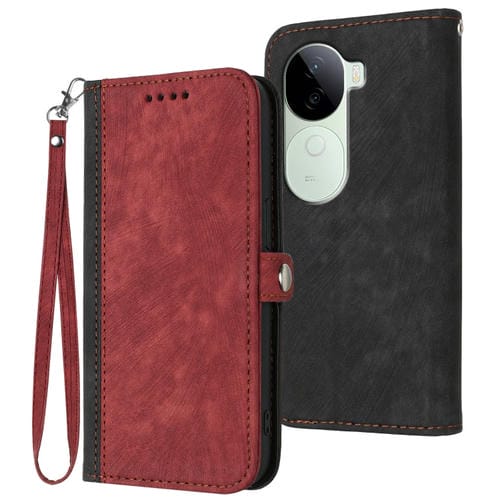 Funda de Cuero para Teléfono con Correa de Mano y Hebilla Lateral Doble Plegable para Vivo Iqoo Z9S/V40E (Rojo)