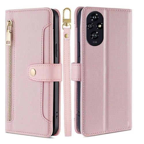 Funda de Cuero para Honor 200 5G con Cremallera y Textura de Oveja (Rosa)