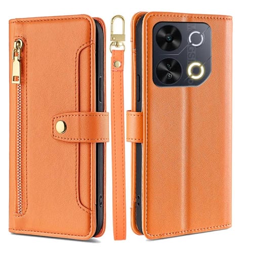 Funda de Cuero con Cremallera y Textura de Oveja para Itel P65 (Naranja)