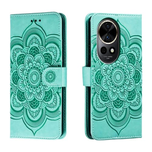 • 1x Funda de Cuero para Huawei Nova 12 Pro con Estampado Mandala y Sol (Verde)