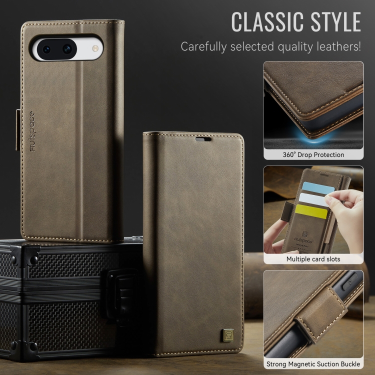 Funda de Cuero con Hebilla Lateral Magsafe y Rfid Magnética para Google Pixel 8A Autspace A11 (Café)
