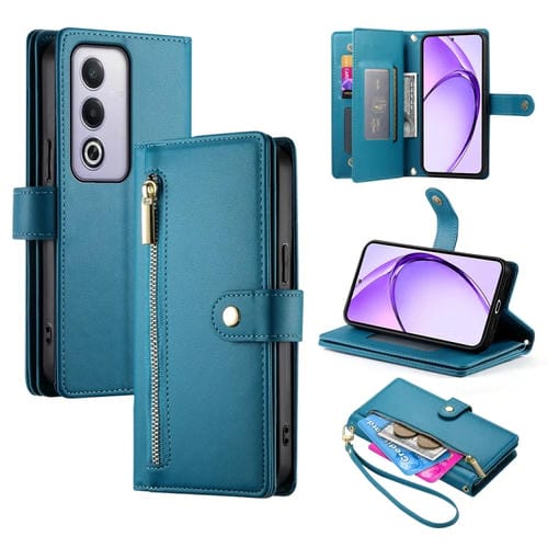 Funda de Cuero para Teléfono con Nueve Ranuras para Tarjetas y Cremallera para Oppo A3 Pro Global (Azul)