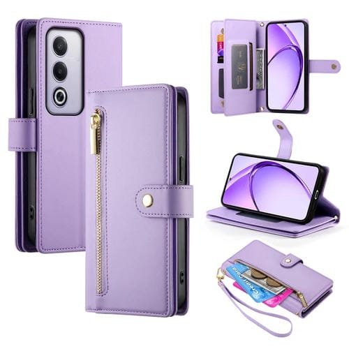 Funda de Cuero para Teléfono con Nueve Ranuras para Tarjetas y Cremallera para Oppo A3 Pro Global (Morado)