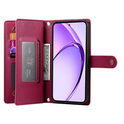 Funda de Cuero para Teléfono con Nueve Ranuras para Tarjetas y Cremallera para Oppo A3 Pro Global (Rojo)