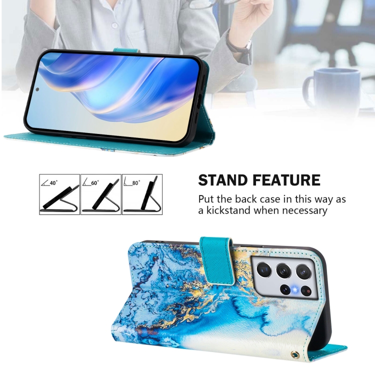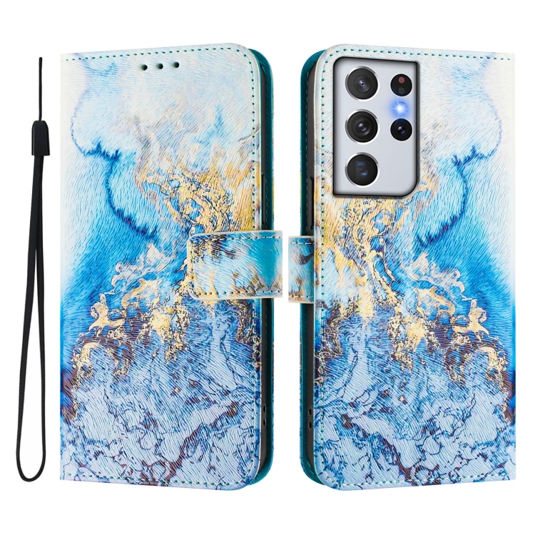 Funda de Cuero para Teléfono Samsung Galaxy S21 Ultra 5G con Patrón Dibujo Artístico (Mármol Oceánico)