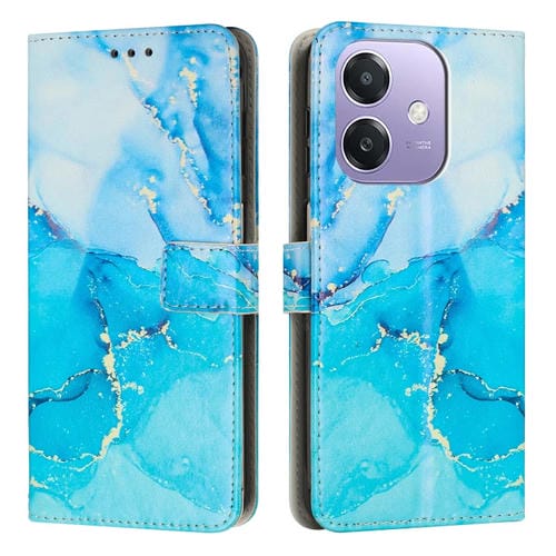 Funda de Cuero para Teléfono con Patrón de Mármol Pintado para Oppo A3X (Azul y Verde)