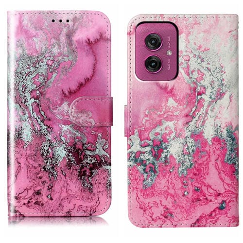Funda de Cuero para Motorola Moto G55 con Patrón Mármol y Dibujo de Colores (Agua de Mar Rosa)