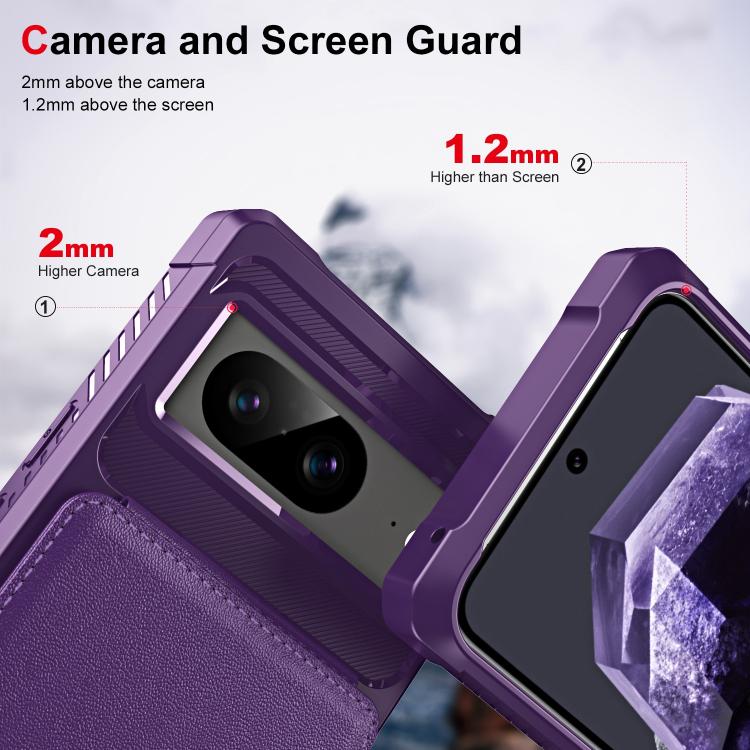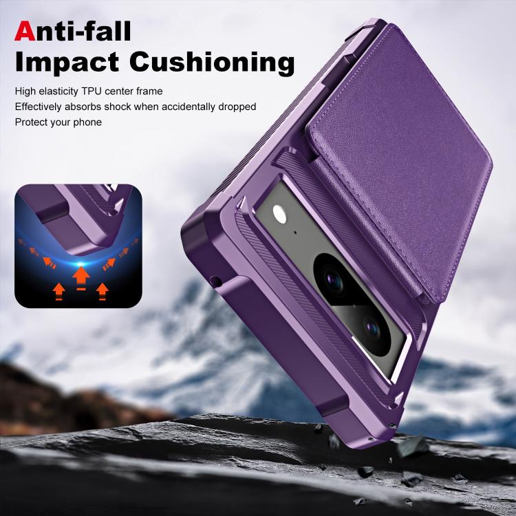 Funda de Cuero para Google Pixel 8 con Tarjetero y Tapa Vertical (Morado)